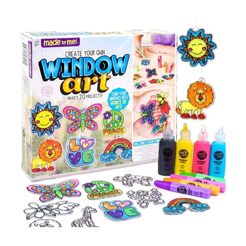 - KIT INCLUDES: 12 Suncatchers, 12 Suction Cups, 1 Bundle of Cording, 1 Acetate Sheet, 1 Glitter Window Paint Pen (10mL), 4 Window Art Paint Tubes (22mL), 3 Tubes Window Art Paint (10mL), Easy-To-Follow Instructions